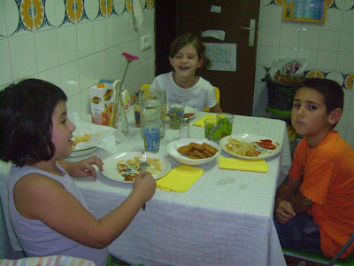 Luego, el plato que nunca decepciona, el que siempre está buenísimo: una pasta con tomate. Fredy y La Gómez, como Hèctor es invitado especialísimo, han puesto la mesa en el cuarto de los libros y han puesto velas...todo elegancia y distinción para degustar ese manjar. :-)